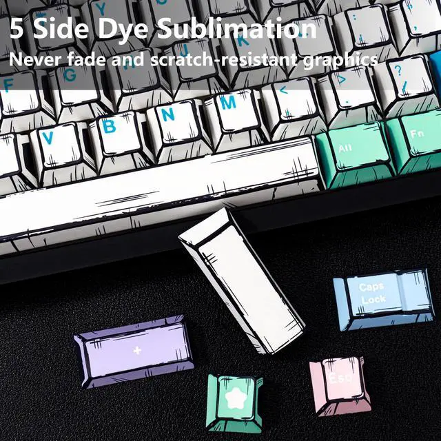 Dye-Sub PBT Keycap: Legends and patterns are infused via 5 side dye-sublimation for long-lasting vibrancy that wont fade or scratch off ^^