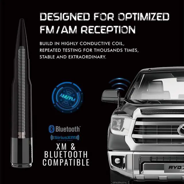 VEHICLE FITMENT: The RYDONAIR 50 cal bullet antenna fits Toyota Tundra 2014 thus 2026 and Toyota Tacoma 1995 thus 2015 ^^