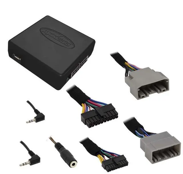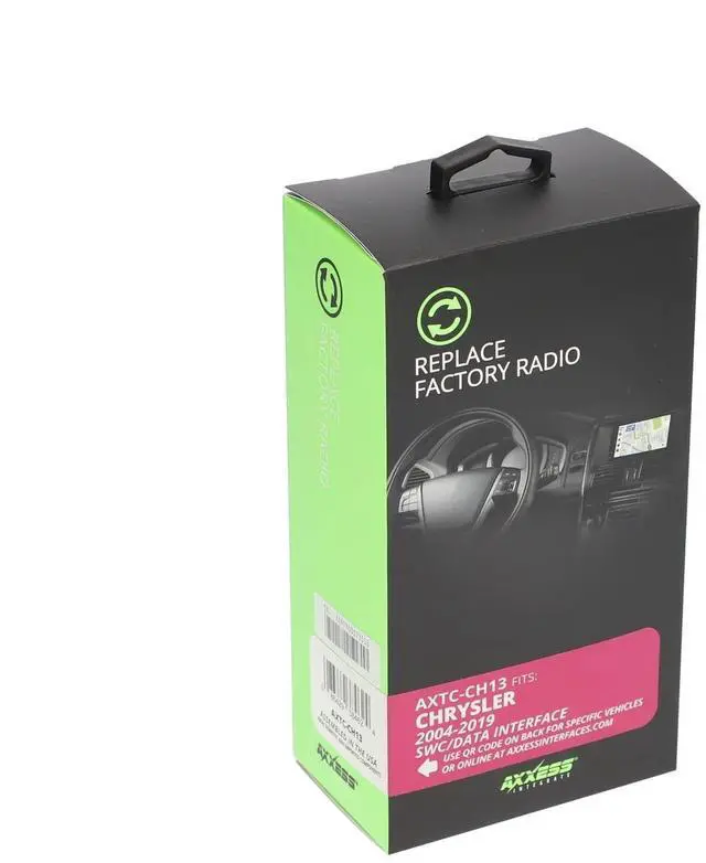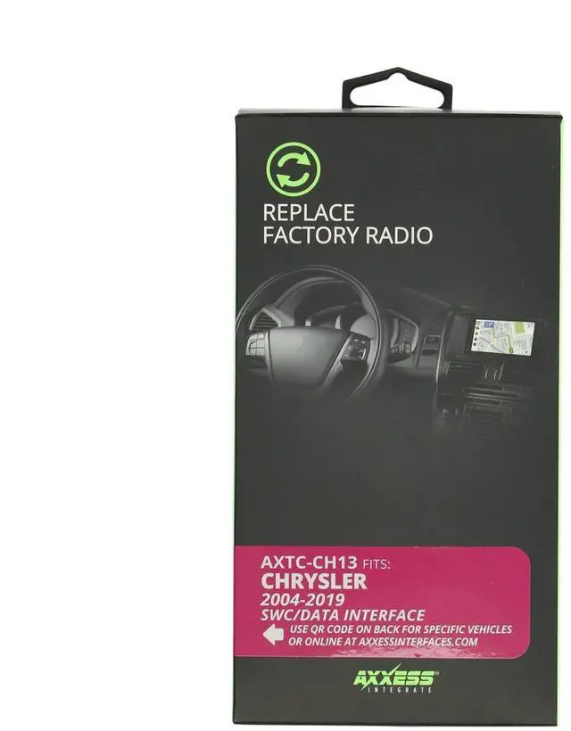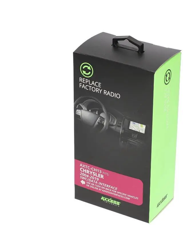 The Chrysler SWC Data Interface is designed to seamlessly integrate aftermarket stereos into select Chrysler vehicles from 2004 to 2019. This essential installation accessory preserves your vehicle's steering wheel controls, allowing you to maintain convenient access to audio functions without compromising safety or comfort. The interface module comes complete with vehicle-specific harness connectors that simplify the installation process, eliminating the need for wire cutting or splicing. The compact black control box houses sophisticated circuitry that translates your factory steering wheel button commands into signals your new stereo can understand. Multiple connection cables are included to accommodate various vehicle configurations and aftermarket head unit requirements.