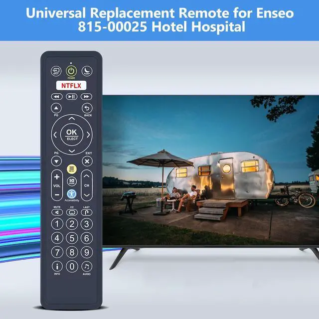 Compatible ModelsUniversal Replacement Remote Control Compatible with Enseo 815-00025 Hotel Hospital with Netlfix