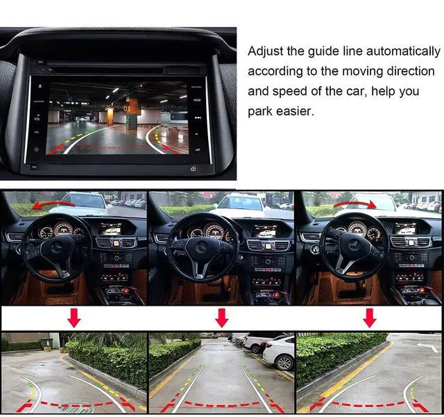 Note: It is with RCA connector. ^^ Intelligent Dynamic Trajectory Moving Guide Parking Line. New Dynamic Guidance Technology, when reversing, you can see the movement track of the car, which can easily and quickly park the car in a safe and reliable position, which is of great help to parking.