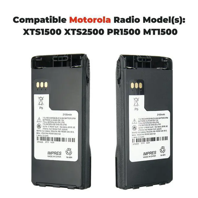 Weight: 289g/ 0.637 lb/ 10.19 oz (per pcs); ultrasonic sealing technology, Impact-resistant design, Dual protection PCM Short circuit protection ^^ Compatible with Motorola Two Way RadiosFor Motorola XTS1500 XTS2500 PR1500 MT1500 Radios ^^ Alternative for Battery ModelNTN9858 NTN9858A NTN9858AR NTN9858B NTN9858C NTN9815 ^^ PAY ATTENTION PLEASEAll IMPRES battery need to use up the battery power at first, then install to the radio and charged full to active the battery!