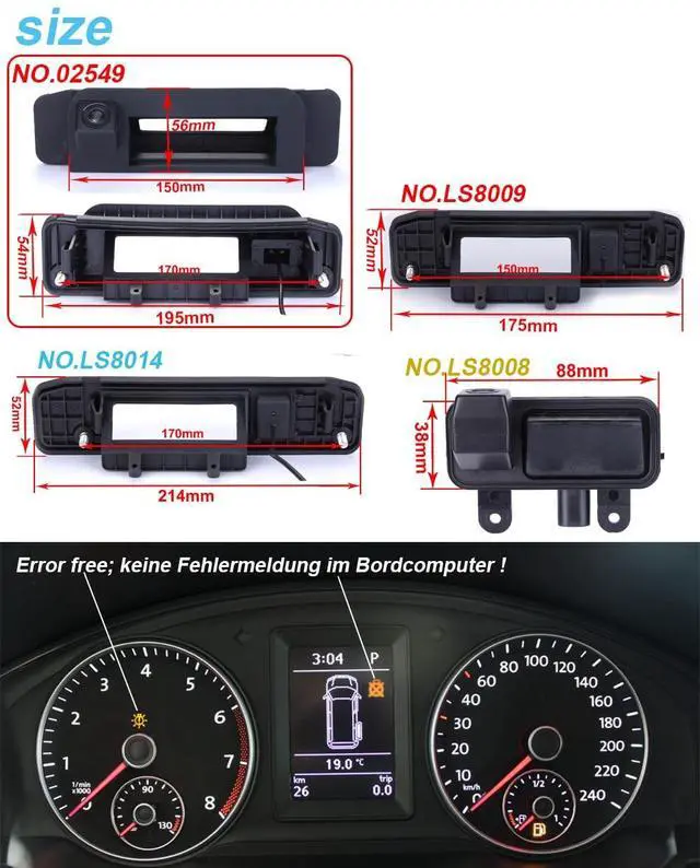 Package includes: 1 x Car Camera, 1x user manual, 1 x 6M video cable, 1 X power supply cable
