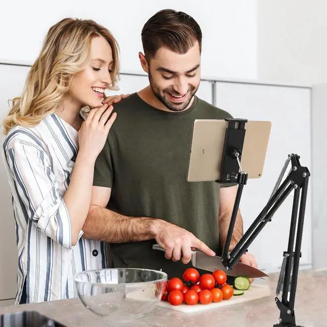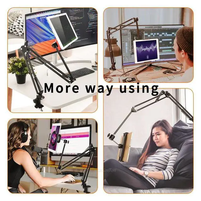 Convenient charging: The tablet holder can realise the use of the holder while charging, the joints of the tablet holder arm are extended and thickened, providing stronger and more stable support. 4 joints to adjust and all angles, free your hands for video calls, meetings, movies, live streaming, studying, cooking, gaming or reading.