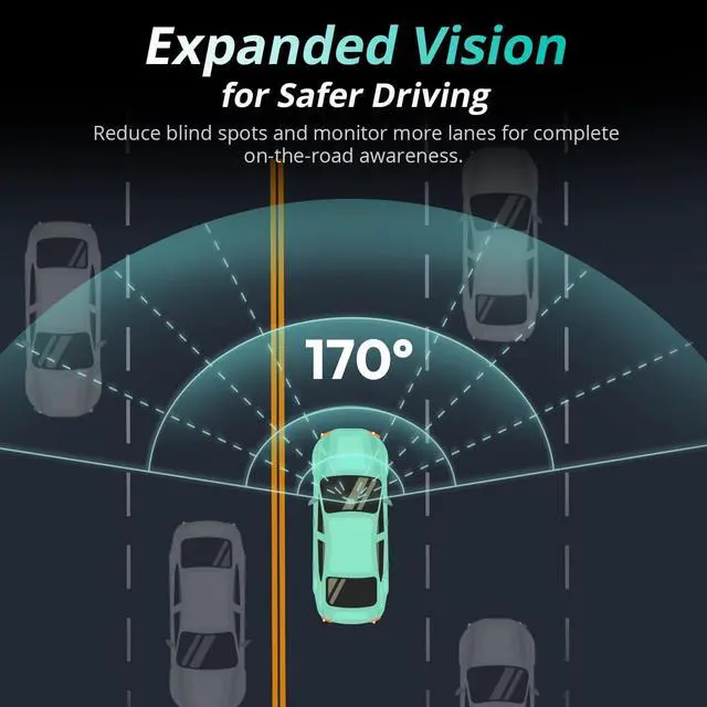 [4K Ultra HD with SONY STARVIS 2] The 4K UHD dashcam front camera captures crystal-clear footage, powered by Sony STARVIS 2it excels in low-light scenes with vivid true-to-life colors. Recording every frame in ultra-sharp detail, it clearly preserves license plates, road signs, and surroundings day and nightnothing escapes its sharp focus. ^^ [170 Wide-Angle Blind Spot Eliminator] Eliminate dangerous blind spots with the dash cam's 170 front wide-angle lensenhancing your complete on-the-road awareness. Effortlessly monitor traffic flow to anticipate hazards like sudden lane-changers, while automatically retaining collision evidence. Drive with true peace of mind.