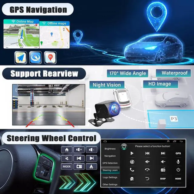 Package includes: 1 x Car Radio Stereo with Frame1 x GPS Cable2 x USB Cable1 x Power Cable1 x Radio Adapter Cable1 x Canbus Box1 x RCA Cable1 x Camera Input Cable1 x User Manual