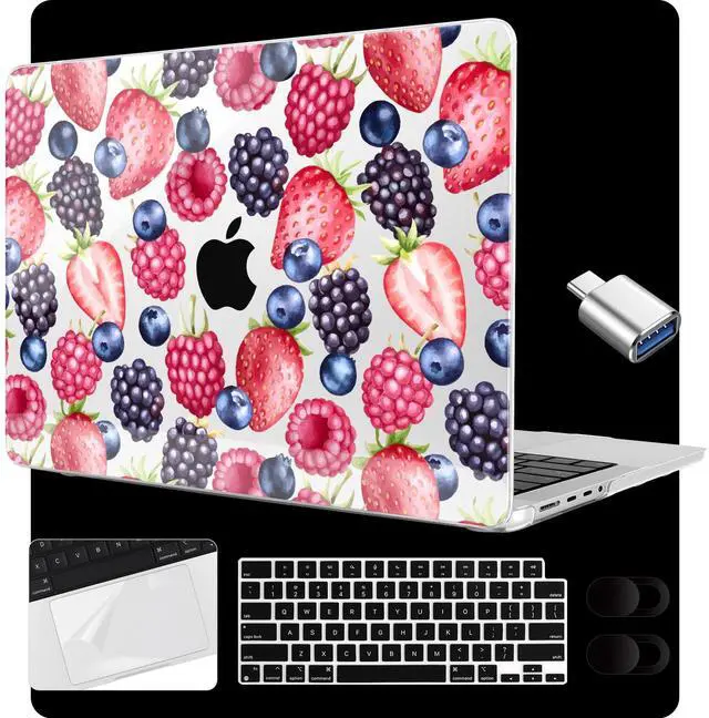 MEEgoodo for MacBook Pro 14 inch Case 2021 2023 2024 Release A3434/A3112/A3401/A3185/A2918/A2992/A2779/A2442 with touch ID & retina display Reminder Note Please kindly check the model number "AXXXX" on the back of the laptop before your purchase, make sure you choose the exact same model number as the listing title stated " A3434/A3112/A3401/A3185/A2918/A2992/A2779/A2442". Not compatible with any other Macbook Pro models Characteristic 1. Case is made of high quality PC material, good heat dissipation performance. Prevent fingerprints, scratches, dirt, smudges and other damages efficiently 2. Case can let you open/close your MacBook all the way and full access to all ports: Thunderbolt 4, Headphone jack, SDXC, HDM1 and Touch ID function 3. The shell is completely removable, easy to install and remove Accessories Feature 1. The webcam cover features a subtle design. Cover your 1080p Face time HD webcam when non-working and prevent network viruses from illegally accessed your personal privacy 2. The matching keyboard cover easy to clean and provides full protection for your MacBook keyboard against dust, dirt, and key wear and more 2. Trackpad protector cover made from triple layer high quality electrostatic material. Protect the laptop trackpad area from scratches and daily wear and tear 3. The type C adapter support OTG function to load USB flash disk directly. This USB Type-C to USB connector also support synchronous charging to your phone and tablet with data transfer What's in the Box 1 14-inch Case + 1 Keyboard Cover + 1 Type C Adapter + 1 Trackpad Protector Cover + 2 Webcam Covers