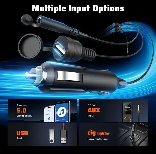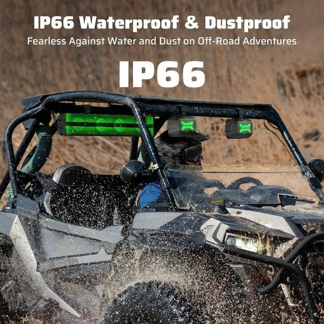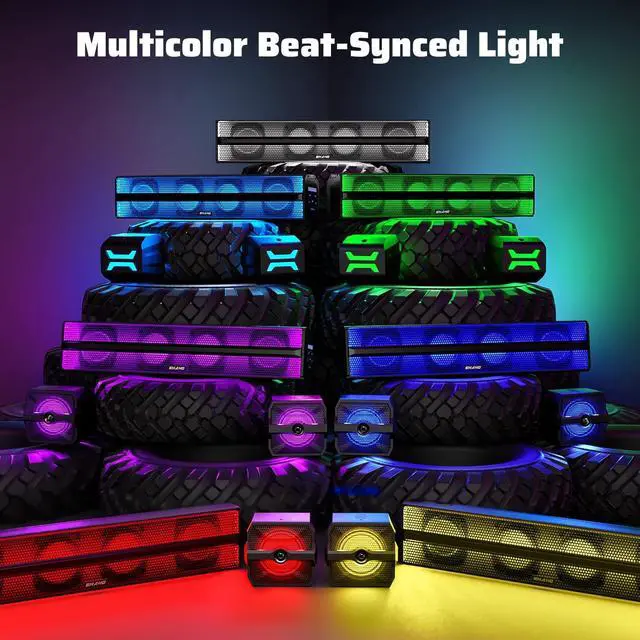 Light and music merge for a thrilling rock audiovisual experience on your journey ^^ Strong IP66 Waterproof SXS Soundbarsxs sound bar boasts a higher level of waterproof and dustproof capabilities compared to others. Plus it's heavy-duty housing, tough enough for riding in outdoors. No fears when using speakers in extreme weather ^^ Remote Control and Multiple InputsGolf cart soundbar with Bluetooth 5.0 providing stable audio connection without loss or latency. Comes with a control panel and wireless remote control. With Bluetooth streaming, a USB port, and a 3.5 mm AUX input, you can listen to your music any way you want to ^^ Easy Installationatv speaker can be easily installed in 12V vehicles using the included cigarette lighter power connector in minutes or directly connecting the Marine sound bar power cord to the battery.