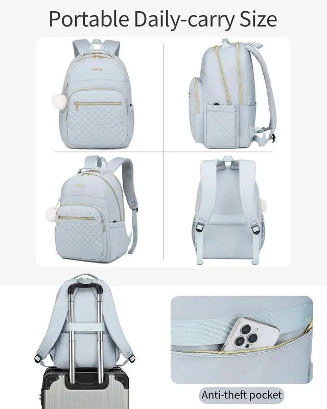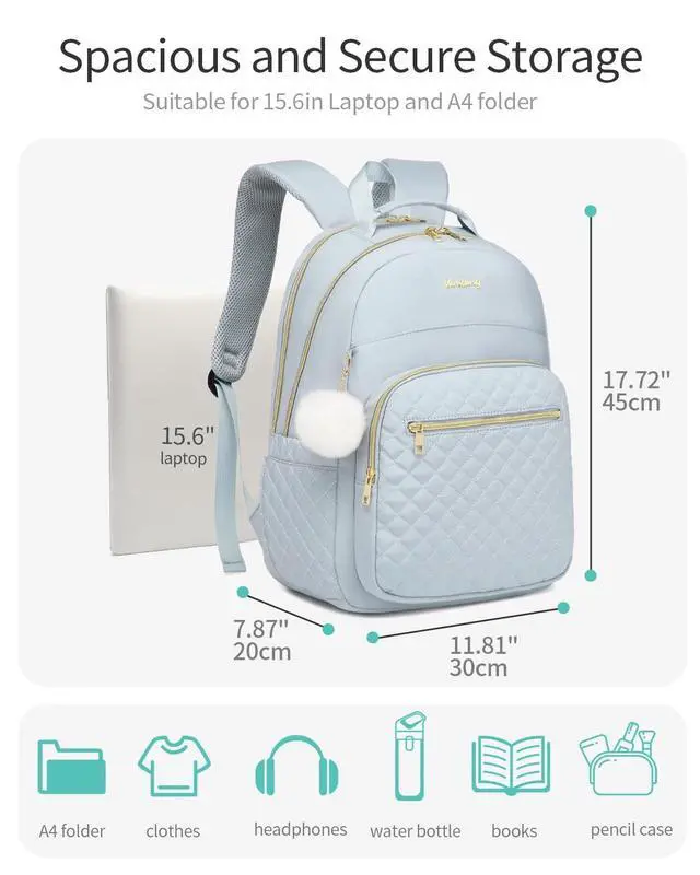 Useful Pockets: Featuring a separate padded laptop compartment that holds and protects a 16 / 17 inch laptop, ensuring your tech stays safe on the go. The large main compartment is roomy for daily necessities, such as folders, text books, lunch box and electronic. Quick access front pockets are perfect for keeping all of your smaller items secure. On the outside, it has two water bottle pockets and a back anti-theft pocket for secure storage ^^ Durable