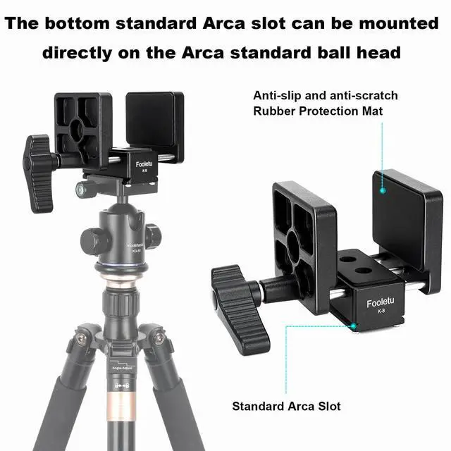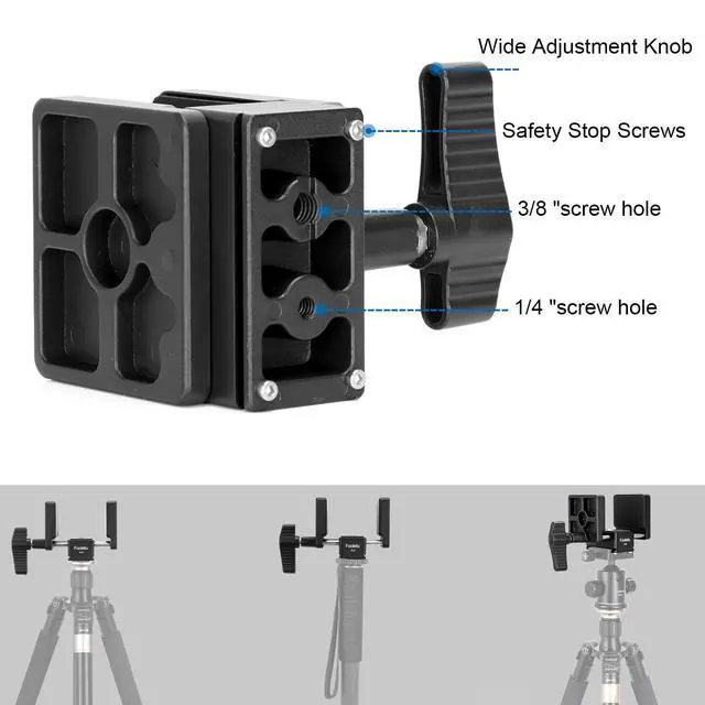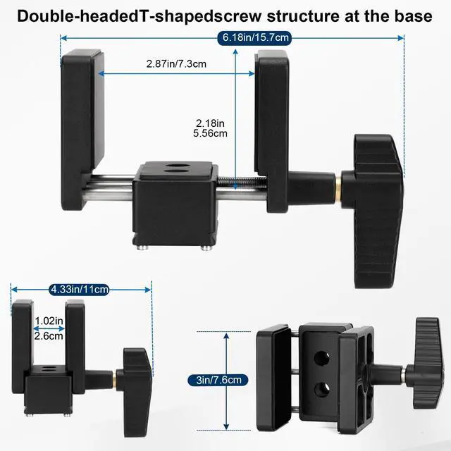 Double-headed T-shaped screw structure at the base, the center position will stay in place when adjusting the width of the base so as to ensure the precision of the equipment. Clamp adjustment range 1.02" to 2.87". It is capable of holding a variety of equipment, including handguns, rifles, air guns, shotguns, and crossbows. Just snap the head on and clamp your gun into the rest until snug with the easy turn dial for a quick, shooting setup. ^^ Universal rifle saddle features 1/4" and 3/8" mounting hole on the bottom, a standard Arca Swiss base to mount the shooting saddle directly to a ball head, tripod, bipod, or monopod stand.