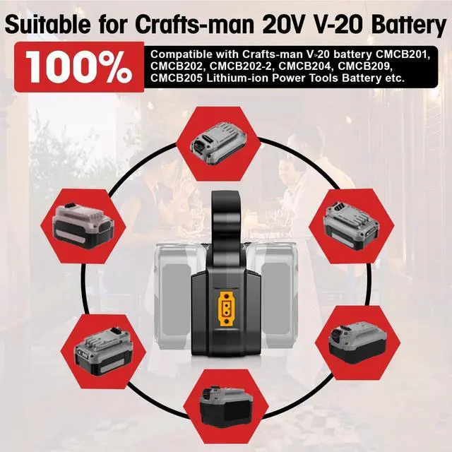 2 in 1 2 PCS Battery Work Enjoy the DIYThis 2-IN-1 battery adapter for Dual voltage output with 18V/20V on one side and 36V/40V on the other side, 2 in 1 Battery Adapter is convert for Craftsman 2pscks 20V batteries to work for DIY Ride On Truck, RC Car Toys and Robotics. Two batteries Double power and double battery capacity work simultaneously on your DIY tools, higher powerful and longer working time, more efficient on the DIY Rc Car Toys, Robotics and Rc Truck tool. ^^ Fit Craftsman 20V BatteryCompatible with Craftsman 20V Lithium-ion batteries, such as CMCB202 CMCB201 CMCB204 CMCB204-2 CMCB202-2 CMCB204-OPE CMCB209 and Use your tool battery to offer long time fishing, convinience and relax on trip.
