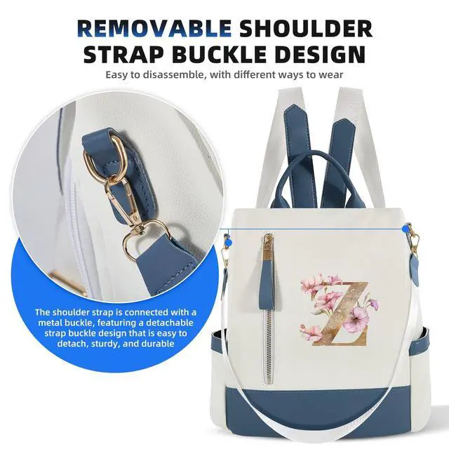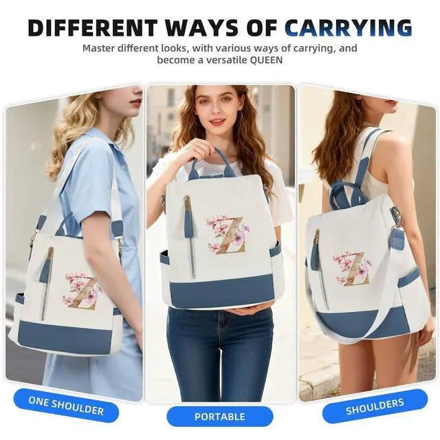 Beautiful letter patternChoose from 26 elegant letters to create a one-of-a-kind backpack. Express yourself and stand out from the crowd with this exclusive accessory that's truly your own. ^^ Lightweight & Trendy, Effortlessly ChicWeighing only 0.37 kg ( 0.82 lbs), this bag is crafted from lightweight, durable fabric. The trendy color-block design paired with sleek hardware adds a modern, fashionable touch to any outfit, perfect for daily commutes or casual outings. ^^ 3-in-1 Convertible Carrying StylesFeatures easily detachable straps to switch effortlessly between backpack, shoulder bag, and handbag modes.