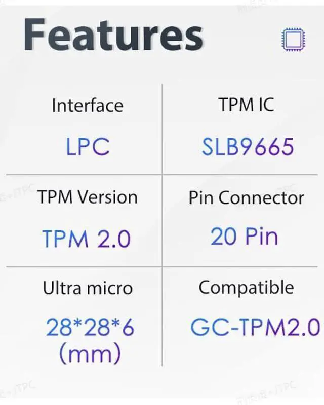 Package Includes1PCS TPM 2.0 Module 20 pin Security Module (As shown in the figure)