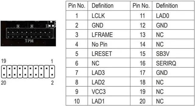 TPM 2.0 are as follows: a 1 GHz or faster 64-bit processor (dual-core/multi-core), 4 GB of memory, 64 GB of storage space, firmware supporting UEFI Secure Boot and TPM 2.0, a DirectX 12-compatible graphics card, and a display with a resolution of 720p or higher. 3. This product has a 20-pin-1 connector. Please carefully check the pin positions in the image to ensure compatibility with your motherboard before purchasing.