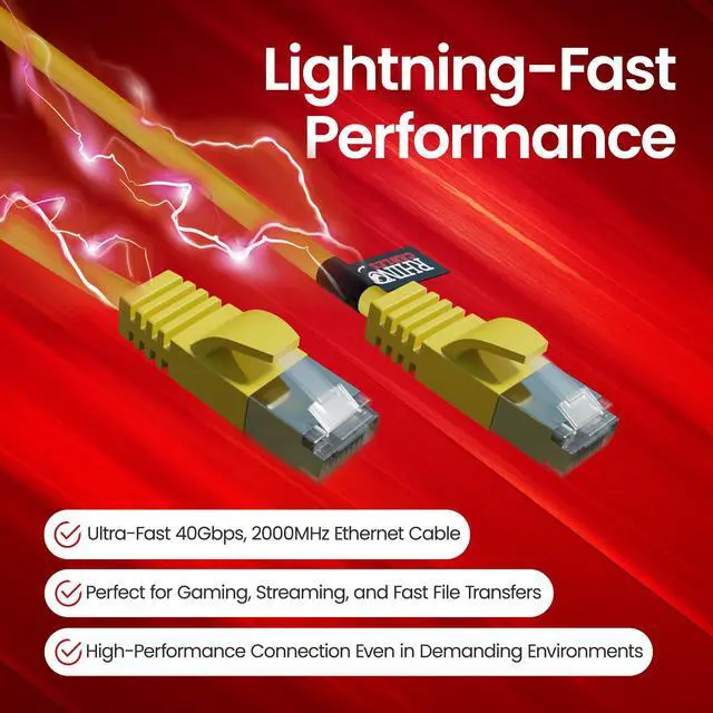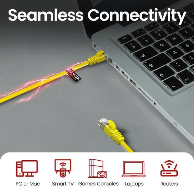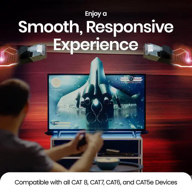 UNIVERSAL COMPATIBILITY FOR ALL DEVICES: This Cat8 ethernet cable works seamlessly with routers, modems, gaming consoles (PS5, Xbox), smart TVs, laptops and more. The RJ45 connector is compatible with Cat8, Cat7, Cat6, and Cat5e devices, making it the perfect choice for home, office, or gaming setups. Available in various sizes, from short ethernet cables to extra-long ethernet cables, to suit all needs.