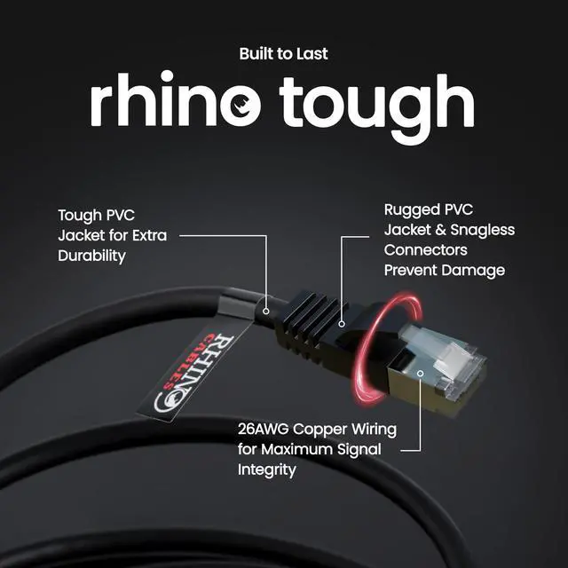 TRUSTED PERFORMANCE & QUALITY: Rhinocables is a leading name in high-performance networking solutions, offering superior quality, reliability and durability. Our Cat8 ethernet cables are rigorously tested to meet industry standards and provide exceptional speed and stability. Choose Rhinocables for fast, secure, and future-proof connectivity for your home or business needs.