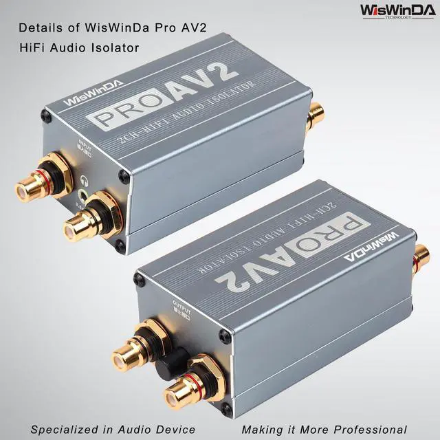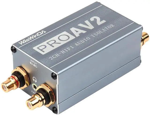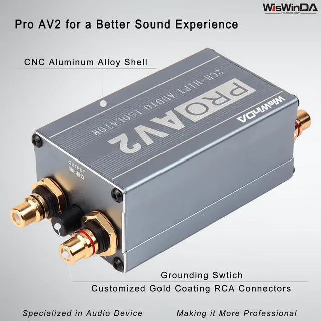 WisWinDa Pro 2Channels RCA& 3.5 Aux HiFi stereo ground loop isolator for home theater car audio player etc used in different situations. ^^ Customized gold coating RCA connectors ^^ Build-in quality audio isolators ^^ Sound quality improved and solving problems of the ground loop noises ^^ More suitable for the music enthusiast to listen and feel the richness of the music ^^ Plug&Play design