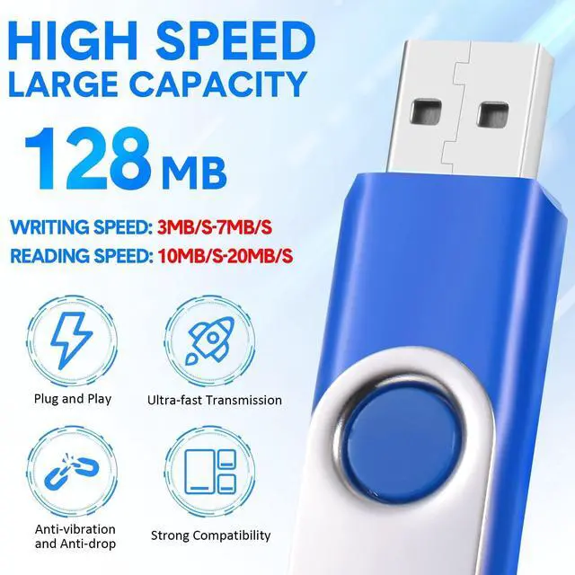 Reliable: the USB 2.0 thumb drive adopts A level flash memory chip, which makes the data transmission and storage process more secure and stable, with faster speed and better compatibility; 128 MB jump driver compatible with USB 2.0 backward USB 1.1, no need to install additional drivers ^^ Plug and