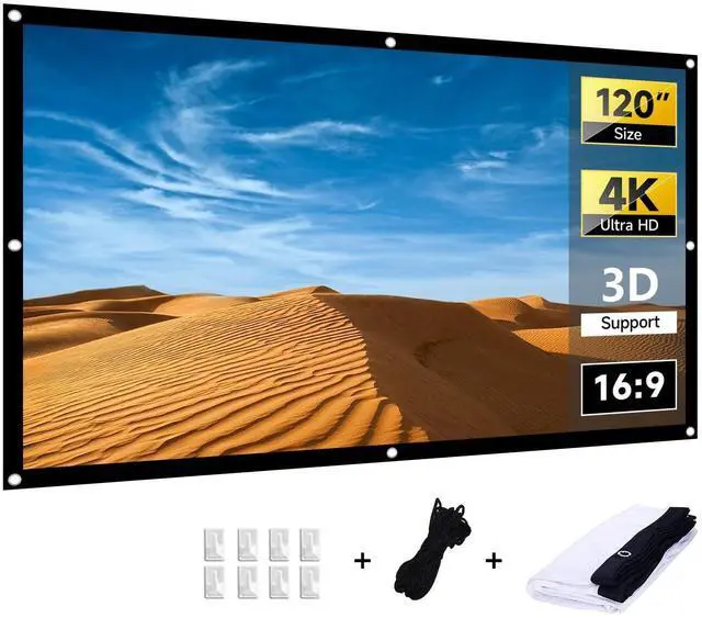 120 Inch Projector Screen, 16:9 HD Foldable Anti-Crease Portable Projection Screen Movies Screen for Office Home Schools Theater Outdoor Indoor Support Double Sided