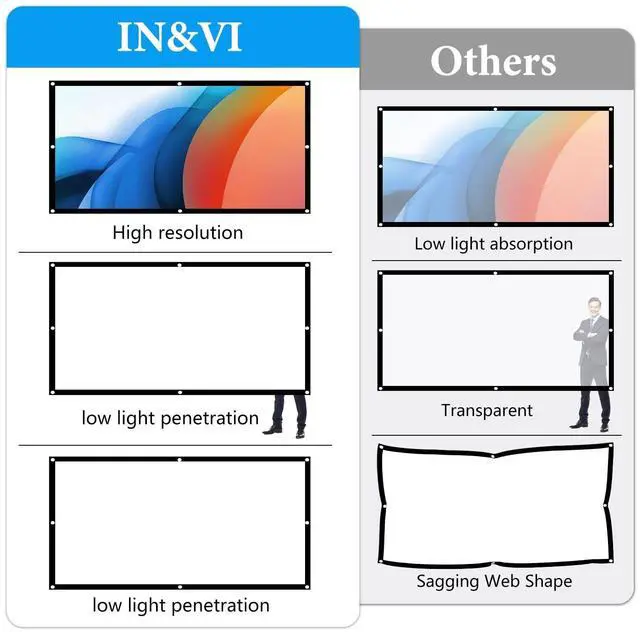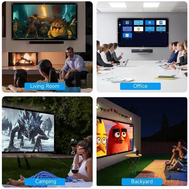 Versatile Display Options: Our projector screen supports various display ratios,and more. Enjoy a clear and crisp image, making it perfect for diverse scenes such as home theaters, outdoor parties, and office presentations.
