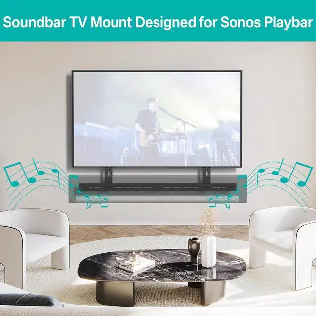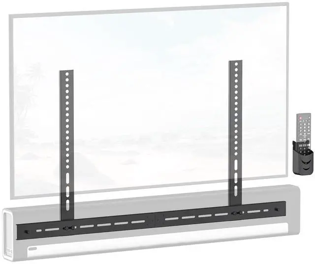 Remote Control Holder: Above TV soundbar mount for Sonnos Playbar sound bar tv mount comes with a remote control holder that holds the remote securely in place to prevent loss or damage. You can also stick it anywhere, with this remote control holder, you can easily access your remote control anytime without searching for it. ^^ Enhance the Atmosphere - The under TV soundbar mount for Sonos Playbar tv mount comes with all the necessary screws and instructions, ready to use right out of the box. After mount your soundbar under the tv then it can move with your tv and achieve the surround sound effect to enhance the whole atmosphere.