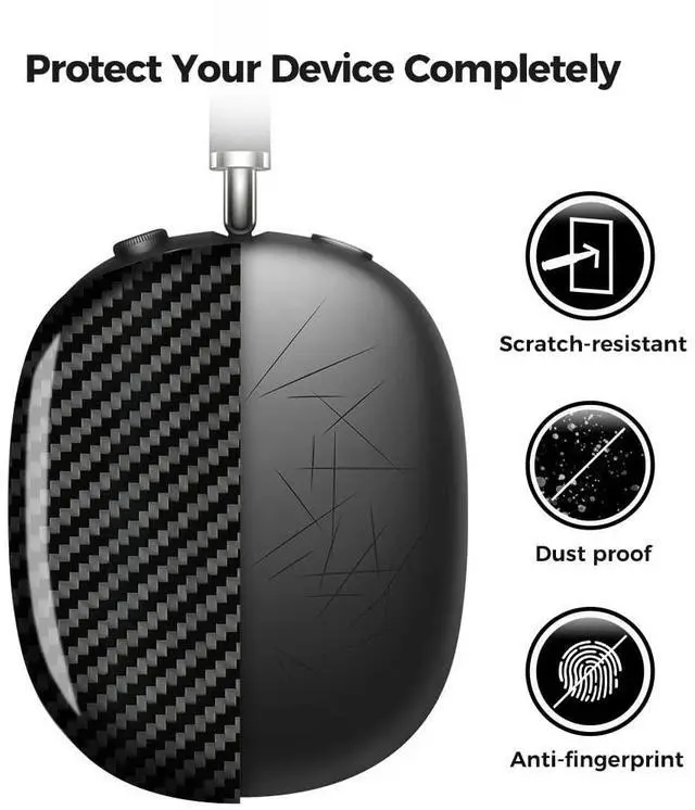 Genuine Carbon FiberThe AirPods Max protective cover is made of genuine carbon fiber, it ensures color never fades. With its twill weave, matte finish, and superior tactile feel, it offers unbeatable protection. ^^ Strong PtotectionThe case for AirPods Max is scratch-resistant, Dustproof, Shockproof, anti-fingerprint, provides all around protection to your device. ^^ light weight and Tight fitWith delicate design, the AirPods Max cover can be compatible with your headphone pefectly. ^^ DurableThis carbon fiber case for Apple headphone likes having a stainless steel shield for your headphones.