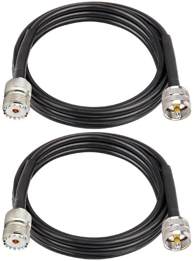 Impedance: 50 Ohm ^^ Ultra-Low Loss The braid of this cb coax cable is high-density tinned copper and 100% shield. The signal loss of this 6ft cb radio cable on 450MHZ is only 0.66 dB. SWR < 1.2 on 450MHZ ^^ Durable Solidly Built This pl259 male to pl259 female cable is with the solid copper conductor. Flexible UV proof rf-pvc jacket, designed for outdoor exposure in harsh environments. It could be better in resist oxidation and corrosion than other uhf pl259 cables ^^ Prevent Coming Off PL259 cb antennas cable connectors use adhesive-lined heat shrink to seal the cable to UHF connector after it's assembled. The connector is solid and professionally attached and no worried about connector pull out ^^ Applications This cb coax cable could be used for cb ham radio, HF amateur radio, marine boat VHF radio, swr meter, surge protector, Walkie Talkies and etc. We provide 12 months guarantee to every customer, please contact us if there is any problem