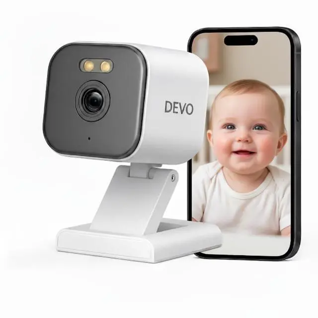 Devo CCAZ10 Security Camera 2K ^^ Indoor &Outdoor^^Baby Monitor & Pet Camera ^^ Live Stream, 2-Way Audio, Color Night Vision, Motion Alerts & Notifications White,1 Cam