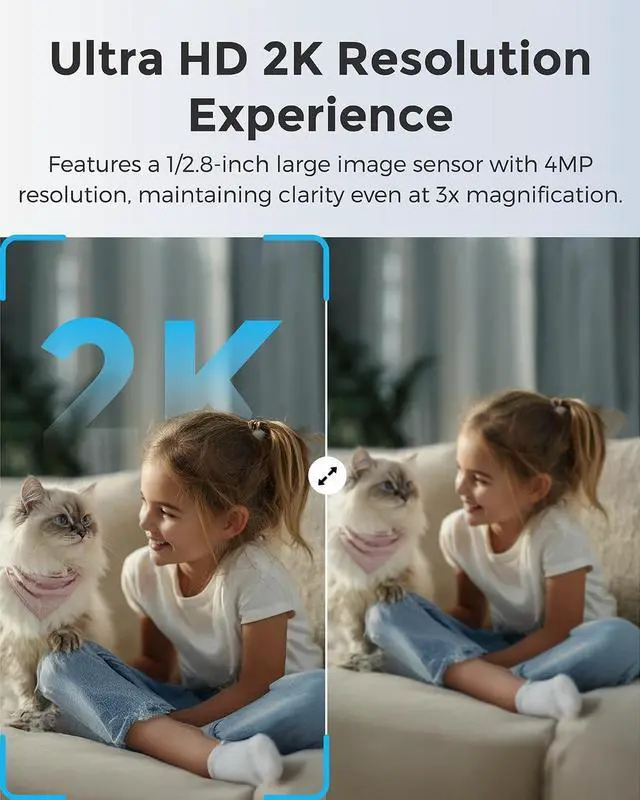 2K Crystal Clear Video - Experience professional home surveillance with our 2K QHD smart security camera with 1/2.8" 4MP CMOS sensor, maintaining crystal clarity even at 3x zoom for complete peace of mind.