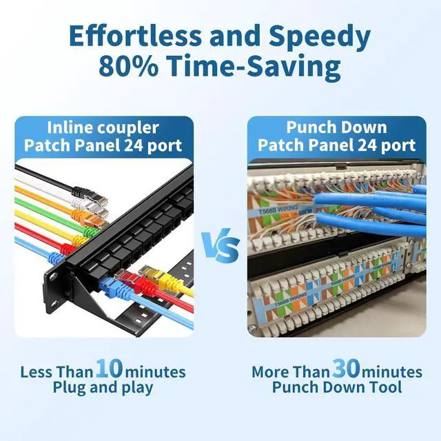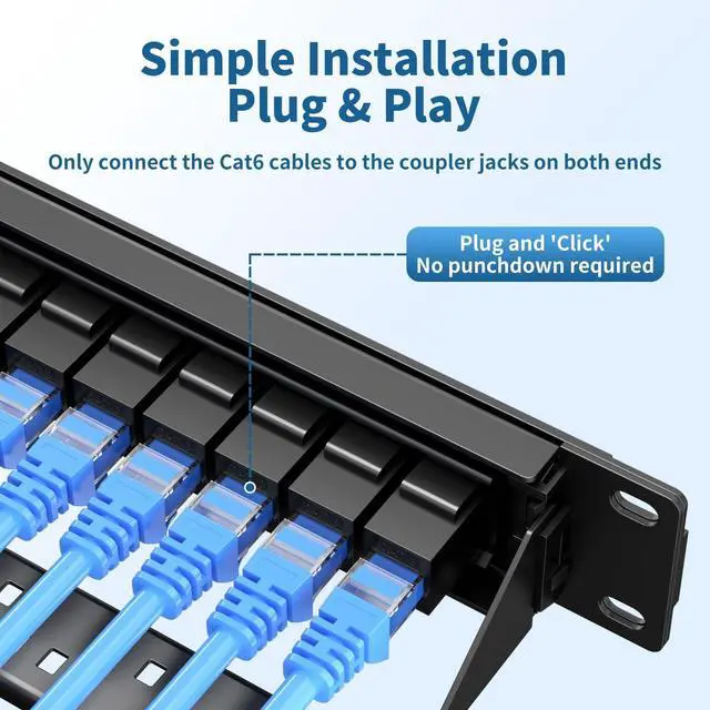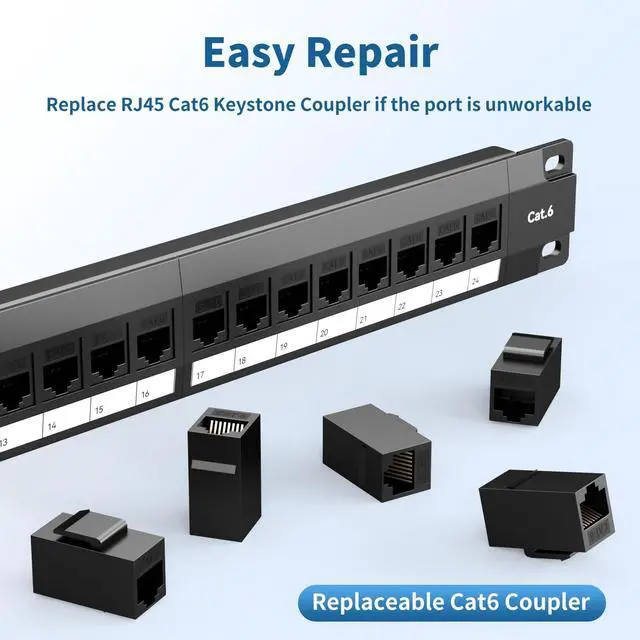 Toolless Termination: Cat 6 Patch Panel 24 port features toolless RJ45 coupler jacks, eliminating punch-down needs for easy cable connections. Its 24 port patch panel offer greater expansion than 12 or 16 port patch panels and can pair as a 48 port patch panel alternative.