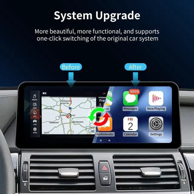 With Bluetooth function or USB cable connection, you can easily access GPS navigation, make calls, send and receive messages, enjoy music, watch videos and other functions. Provide a smarter and safer driving experience. ^^ System Upgrade and One-click SwitchAfter the upgrade, the touchscreen adopts dual system operation, retaining the original car functions while adding Linux system functions. Functions such as FM radio, multimedia, steering wheel control, i-drive knob control, OEM reversing camera, etc. are still intact, and there is no need to make any software changes to the vehicle's control unit.