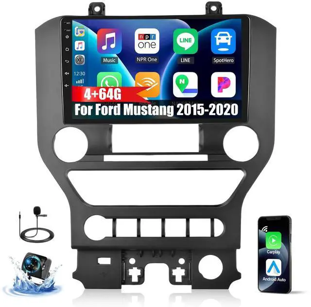 Android 13 Car Stereo for Ford MustangThe carplay car stereo fits for Ford Mustang 2015 2016 2017 2018 2019 2020. Android 13 system, 9'' Capacitive touch screen, screen size is 228mm*218mm*130mm, 4G RAM+64G ROM, running smoothly in colleges and universities. A variety of EQ sound effects scene selection. Capacitive touch screen, 1280*720 high resolution, Support 1080p video, will provide you the Excellent experience in the car ^^ Compatible with Wireless Carplay & Android Auto&Mirror LinkThis car stereo supports CarPlay/Android Auto function. Just connect Bluetooth, you can project the contents of your phone to the large screen of the host, and you can share your favorite 1080P videos, high-definition pictures, etc.