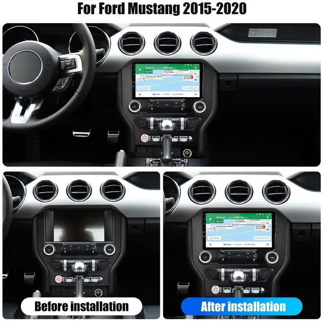 Upgrade dual system mirror link: IOS/Android mirror link ^^ GPS Navigation & WiFi Connect9 inch car stereo for Ford Mustang built-in WiFi module, support online/offline maps. Built-in Offline Map of North America. Online map also be supported, after connected to WiFi, you can use GPS Navigation at anywhere. This item allow install or delete android apps from Application Store, as the same as smart phone ^^ EQ Setting32-band equalization, and sound type selection on the app to make up for the lack of the original car speakers and obtain better lossless sound quality. Smart voice assistant, you can voice control it to make calls, control map navigation, send text messages, etc. It can better liberate your hands and achieve safe driving ^^ FM/RDS Radio Receiver &BluetoothBluetooth allows you effectively share music from mobile phone to the car stereo, answer phone call by hand free, calling and hang up phone with just one push of a button, daily driving easier and safer. Build in FM, automotive level chipset provides the best radio signal reception performance, lets enjoy the best FM station and and drive with the rhythm of the city ^^ Steering Wheel Control &AHD Rear View CameraThe car radio for Ford Mustang supports the car steering wheel to remote control the radio panel, including switching songs, switching channels, adjusting volume, answering calls, etc.