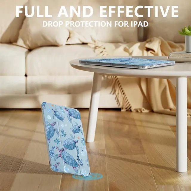 High Quality&Perfect Fit: This cute sea turtle print case for ipad is made of soft silicone on the front and durable TPU on the back. It has a comfortable lining that can protect your pad from scratches and bumps. Meanwhile, this cartoon Blue Waterweed cover for ipad is perfectly tailored to easily access all controls and functions (camera, speakers, ports, and buttons) ^^