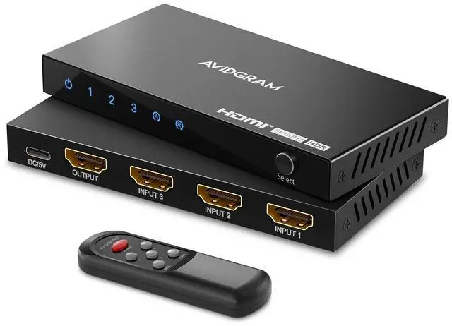 ^^ Broad CompatibilityThis HDMI 2.1 switcher is compatible with PC, PS4 Pro, PS5, Xbox Series X, Blu-Ray Player, Chromecast, MacBook, UHD TV, Projector, Monitor, etc. ^^ What You GetAVIDGRAM HDMI Switch x1, USB-A to USB-C Power Cable x1, IR Remote Control x1 (2*AAA Batteries Not Included), User Manual x1 with a hassle-free 2-year warranty and lifetime technical support. Feel free to reach our friendly customer service if you have any questions.