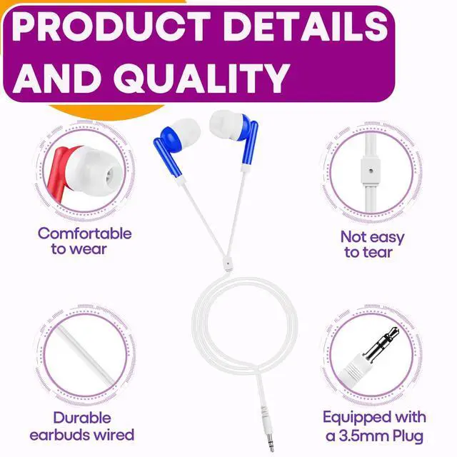 • Vibrant Colors:Bulk Earphones 100 Pack,individually packaged,available in 10 popular colors,richer and brighter colors to inspire a wider imagination in the classroom or remote learning for students and kids