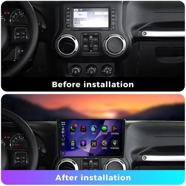 Super Powerful Android OS: The latest Android system with an 8-core processor, 4GB RAM and 32GB ROM in the new touch screen for JEEP Wrangler JK features a smooth and responsive performance, access a wide range of apps, getting rid of the old sluggish original system immediately ^^ CarPlay and