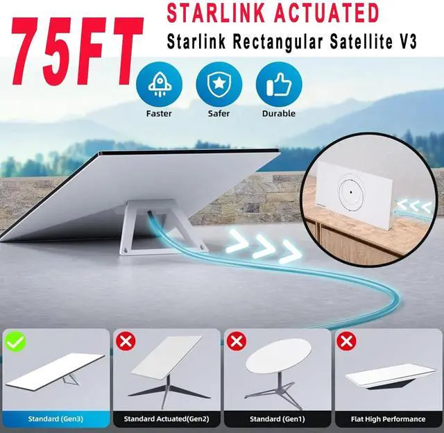 Unmatched Connectivity with Starlink V3Our starlink gen 3 replacement extension cable is tailor-made for Starlink Rectangular Satellite V3, optimizing connectivity. Elevate your Starlink internet kit satellite with our Starlink Gen 3 Cable. Engineered for seamless integration, Whether you're setting up in compact spaces or expansive areas, our cable ensures effortless connectivity tailored to your needs.Designed for STARLINK GEN 3. This cable is compatible with Starlink Gen3,and plug it to your gen 3 Starlink standard dish and router, enjoy seamless internet access.