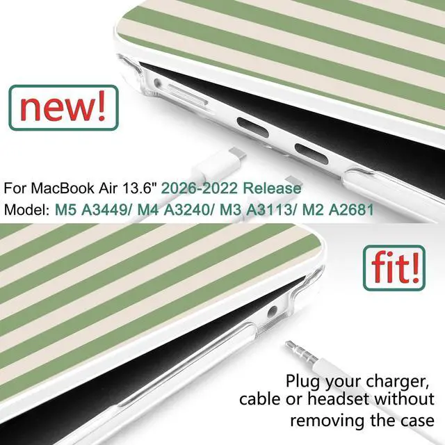 Perfect Fit for MacBook Air 13 Inch ( 13.6 Inch) Designed exclusively for MacBook Air 13.6 inch models with M5/M4/M3/M2 chips (2026 2025 2024 2023 2022). Compatible with models A3449, A3240, A3113, and A2681. Please check the model number Axxxx on the bottom of your MacBook before purchasing. ^^ Stylish Printed Hard Shell Protection Made of durable hard plastic, this slim case protects your MacBook from scratches, scuffs, and fingerprints while showcasing vibrant, fade-resistant printed designs. ^^ Slim, Lightweight & Ventilated Design Ultra-slim snap-on cover adds minimal bulk and weight.