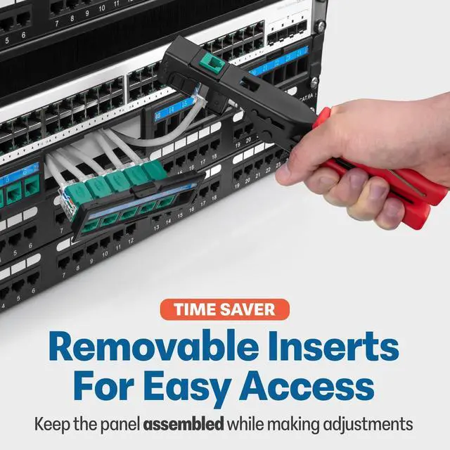 • Convenient Cable Management Unit - The unloaded keystone panel accommodates a removable 6-Port panels for easier access. No need to take the ethernet patch panel apart whenever you need to make adjustments or modifications.