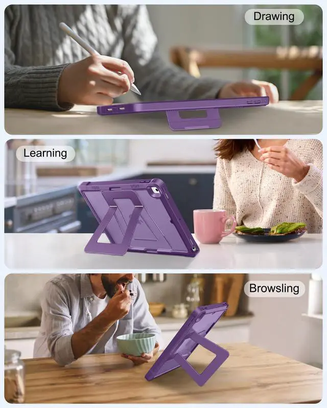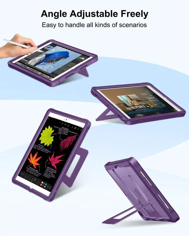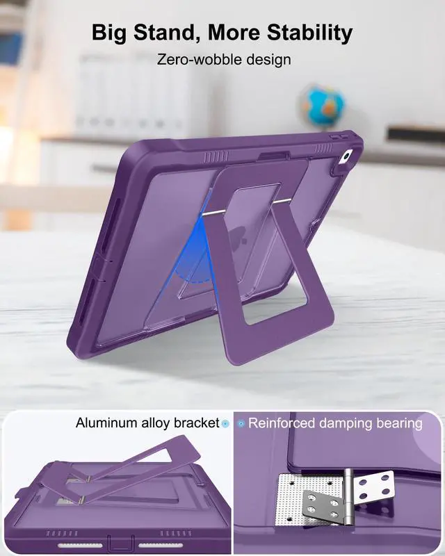 Super Stable Kickstand: Combined aluminum alloy bracket with damping alloy bearings, adjusting the angle freely, and providing extremely stable support for the iPad 6th generation case. Whether it's typing, browsing news, reading books, or watching short videos, you can enjoy its super stability in any situation ^^ Bulit-in
