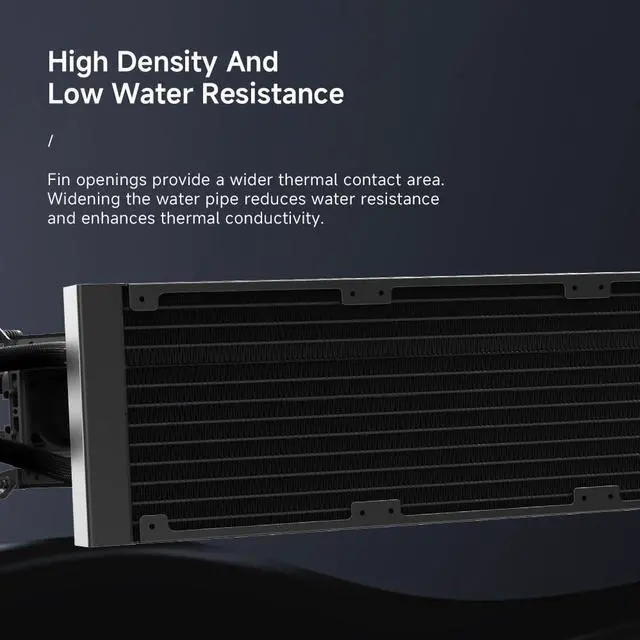 Water Resistance Design: Fin openings are designed to expand the thermal contact area, widen the water pipe to reduce the water resistance and enhance the thermal conduction efficiency, realizing High Density And Low Water Resistance, high efficiency heat dissipation, so that the CPU heat dissipation is not a problem ^^ igh