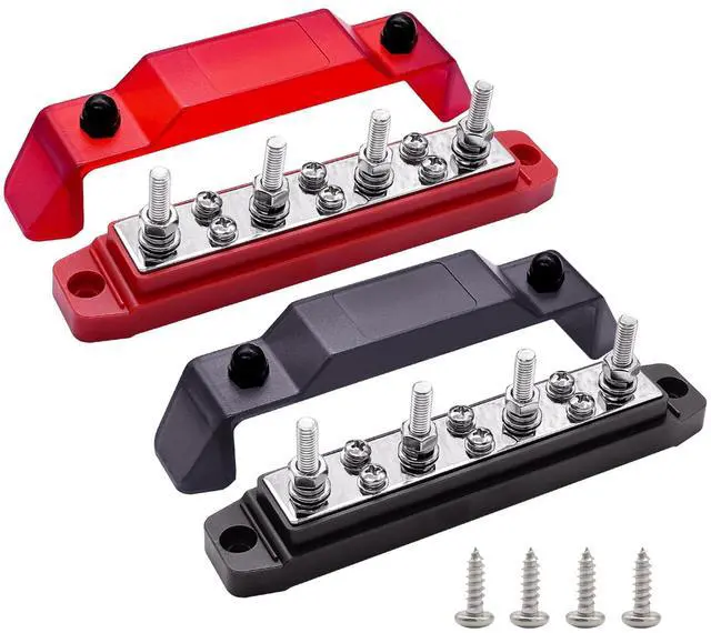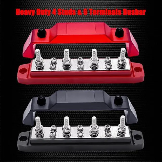 Ampper 12V 150A 6.3" distribution block bus bar 4 M6 studs & 6 x M4 (#8) terminal screws with cover for auto, boat