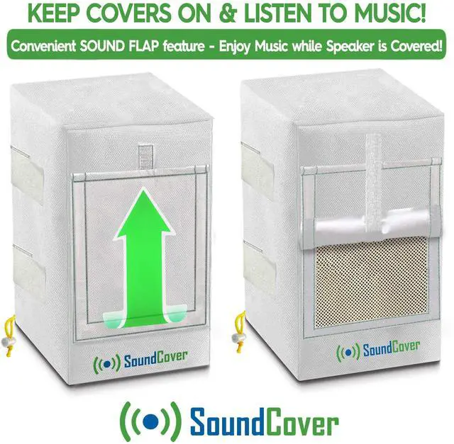 Heavy-Duty Waterproof Protection Shield your outdoor speakers from rain, snow, and UV rays with our premium 600D waterproof polyester covers. Built to extend the life of your outdoor speakers. ^^ Play Music with the Covers On Designed with a roll-up front SoundFlap, allowing music playback while the covers remain securely in place. ^^ Perfect Fit for Compact Speakers Specifically designed for Yamaha NS-AW150, Polk Audio Atrium 5, and similar models.