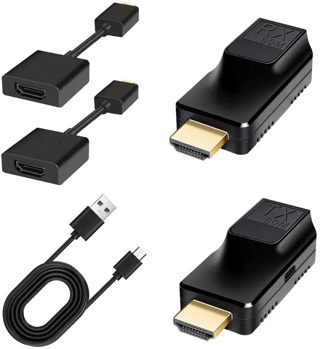 [Extend HDMI to 200FT with Zero Lag] Transmit uncompressed 1080P@60Hz HDMI signals over a single CAT5e/6/7 cable up to 200 feet (60m) without latency or quality loss. Ideal for home theaters, gaming, and professional presentations. ^^ [Plug & Play with Universal Compatibility] No software/drivers needed! Works instantly with TVs, PCs, laptops, projectors, monitors, PS4/PS5, DVD players, and TV boxes. Includes all necessary cables and accessories for immediate use. ^^ [Stable Signal with Optional USB-C Power] Engineered with advanced shielding and anti-interference technology for stable transmission.