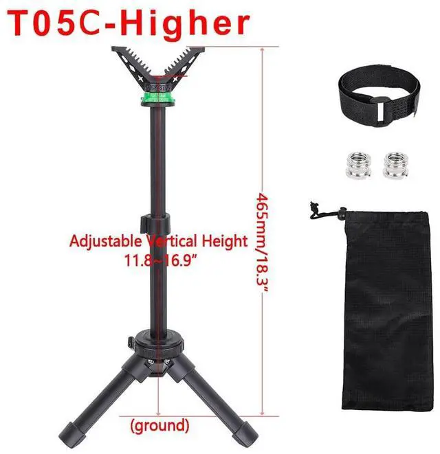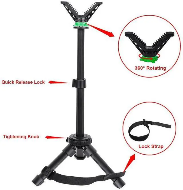 Easy to UseTripod comes equipped with the universal shooting rest V yoke head that rotates 360 degrees and is compatible with most mono / bi / tripod shooting sticks or camera sticks. The non-slip surface of V yoke head gives good grip on the barrel or stock. The 3 legs are finished with non-marring rubber traction feet providing optimal stability regardless of the terrain.