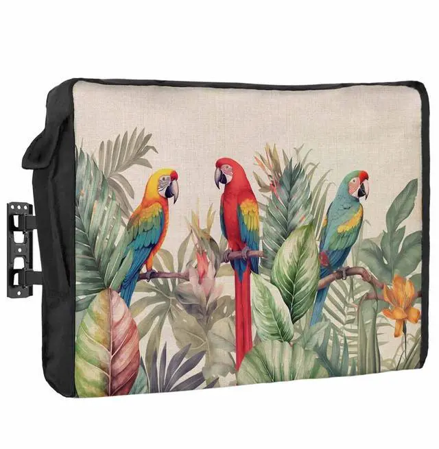 Features: Waterproof TV cover outdoor fit most mounts and stands. Waterproof remote controller storage pocket. Double stitched edges outdoor TV protector. Full protection screen protector for outside TV. Outdoor TV cover with bottom cover is easy to set up.