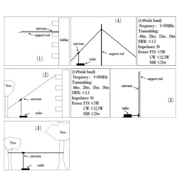 ^^ Multiple Withstand Power: This 1:49 shortwave antenna is a professional end feed antenna, SSB less than 24W, FE8 less than 5W, CW less than 12W, multiple withstand power to meet your different needs of use.