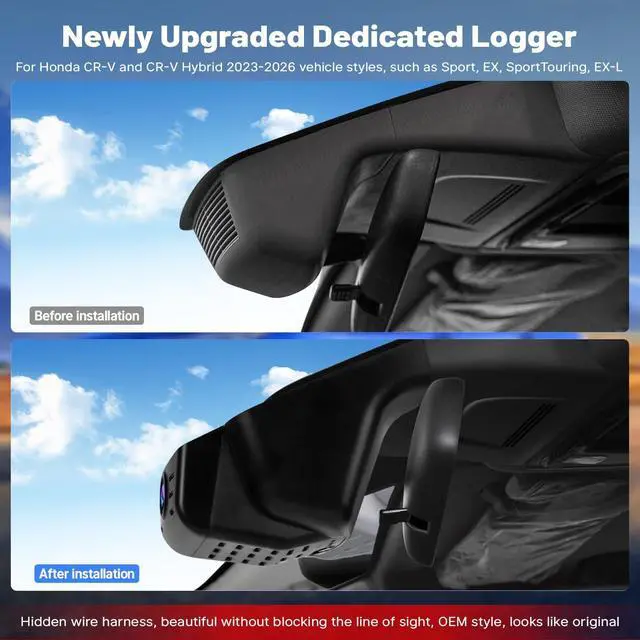 Exact fit for Honda CRVDesigned specifically for Honda CR-V and CR-V Hybrid 2023 2024 2025 2026 vehicle styles, such as LX, EX-L, KuTaiTai dash cam for 2023 honda crv blends very well with the interior and looks factory-made. No wiring modifications neededjust plug and play for a seamless upgrade while retaining OEM aesthetics.