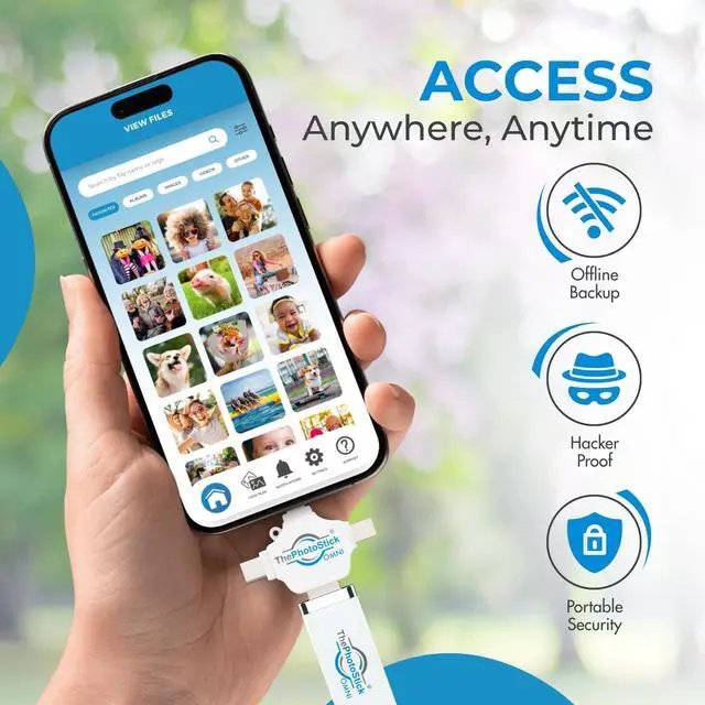 Simple, secure content backup ThePhotoStick Omni automatically finds and saves photos, videos, and other files, helping to keep your digital life organized and protected across devices. ^^ Large capacity This 32GB thumb drive and storage stick holds over 12, 000 images and videos, making it a reliable and safe solution for data access and archiving. ^^ Multi device compatibility Works with PC, Mac, iPhone, iPad, and most Android phones and tablets. One flashdrive for your entire digital collection. ^^ A thoughtful gift for any occasion Give friends and family a simple way to relive a lifetime of memorable moments! ThePhotoStick Omni is perfect for sharing ALL of life's milestones in ONE special keepsake.